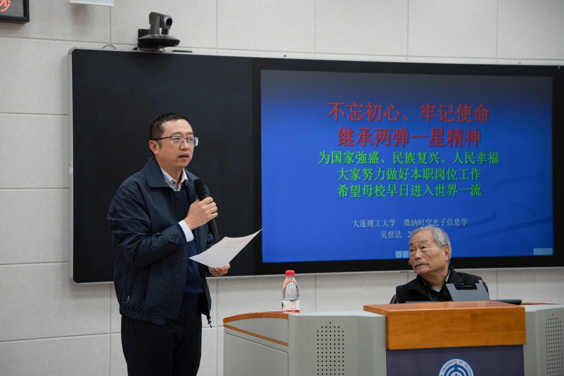 党课活动由星空(中国)院长赵纪军主持。在开场词中,赵纪军介绍了党课活动的背景与吴世法教授的学习与工作经历。赵纪军表示:吴教授身为第一颗原子弹研制工程105人核心团队成员,亲历强国道路上这一重大历史事件,是学院师生近在身边的“英雄”。有幸邀请到吴教授亲临现场上党课,是主题教育时期一次十分难得的学习机会,学院将对本次党课进行现场录制,并制作成视频课程供学院师生学习。