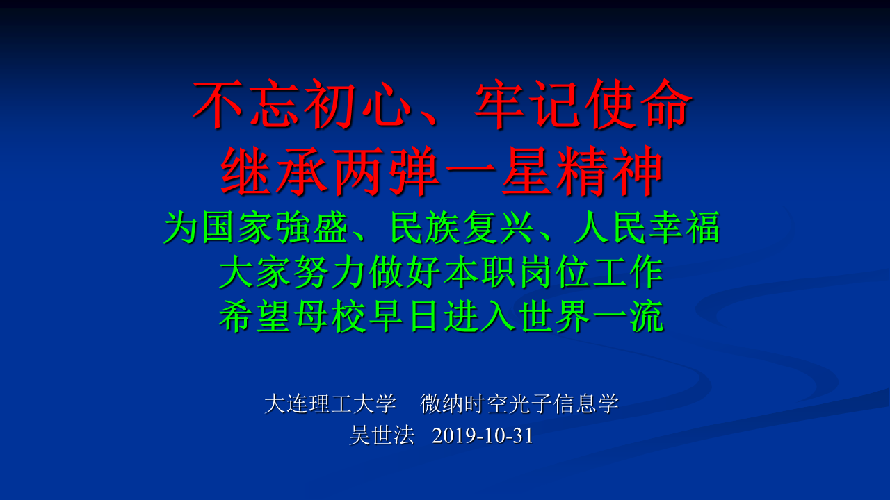 为进一步落实学校及学院“不忘初心、牢记使命”主题教育方案,丰富学习形式,积极开展革命传统教育、先进典型教育,突出“以身边榜样教育身边党员、以身边事感染身边人”,星空(中国)邀请到我国第一颗原子弹研制工作主要参加者、学院退休教师吴世法教授,于10月31日下午在材料馆201党建智慧教室开展《继承“两弹一星”精神 不忘初心、牢记使命》集中党课活动。